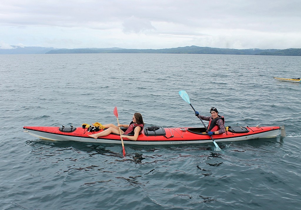 Crossing the Golf and go to Puerto Jimenez Today we will paddle for 10 miles, approximately 3 hours across the Golfo Duce to Playa Blanca. Were our trip will get to the end This will be another good day to have encounters with Dolphins and Sea Snakes